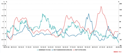 12月中上旬债券市场迎来了一轮强势行情,市场定价基本面边际走弱推动货币政策可能边际转松,长端利率在这一过程中持续反应,超长期国债利率不断创历史新低,考虑汇率贬值的压力重新显现,对央行维持资金面紧平衡的执行和思考重新付出水面, 3月21日,中国人民银行副行长宣昌能在国务院新闻办公室举行的新闻发布会上表示,下阶段,稳健的货币政策将继续灵活适度、精准有效,合理把握债券与信贷两个最大融资市场的关系,保持流动性合理充裕,推动企业融资和居民信贷成本稳中有降,持续做好“五篇大文章”,加大力度盘活存量金融资源,保持人民币汇率在合理均衡水平上的基本稳定,平衡好短期和长期、稳增长和防风险、内部均衡和外部均衡的关系。法定存款准备金率仍有下降空间。